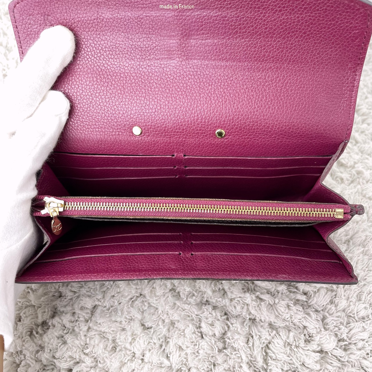 モノグラム柄とカラーカーフを組み合わせ、さらにS字型ロックが特徴の長財布です。