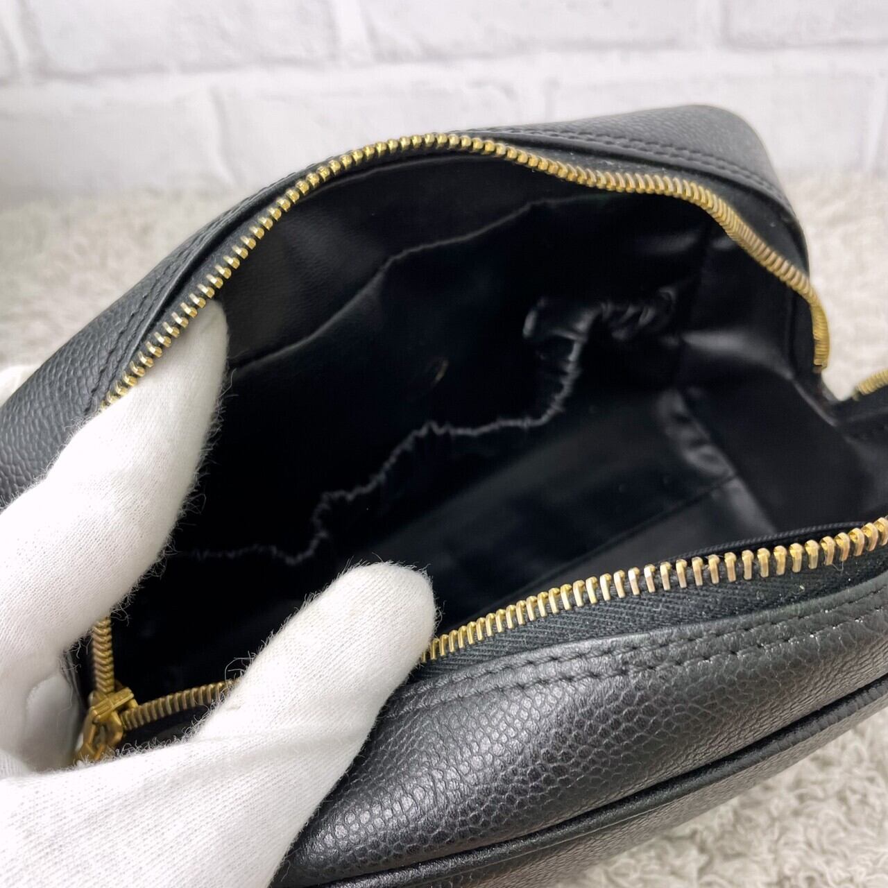 耐久性の高さを誇るキャビアスキン素材の化粧ポーチです。CHANEL【シャネル】定番のブラックカラーは上品で美しく、セカンドバッグとしても活躍してくれます。