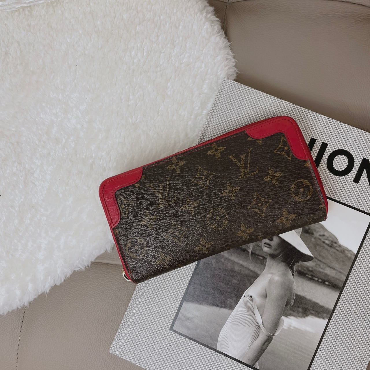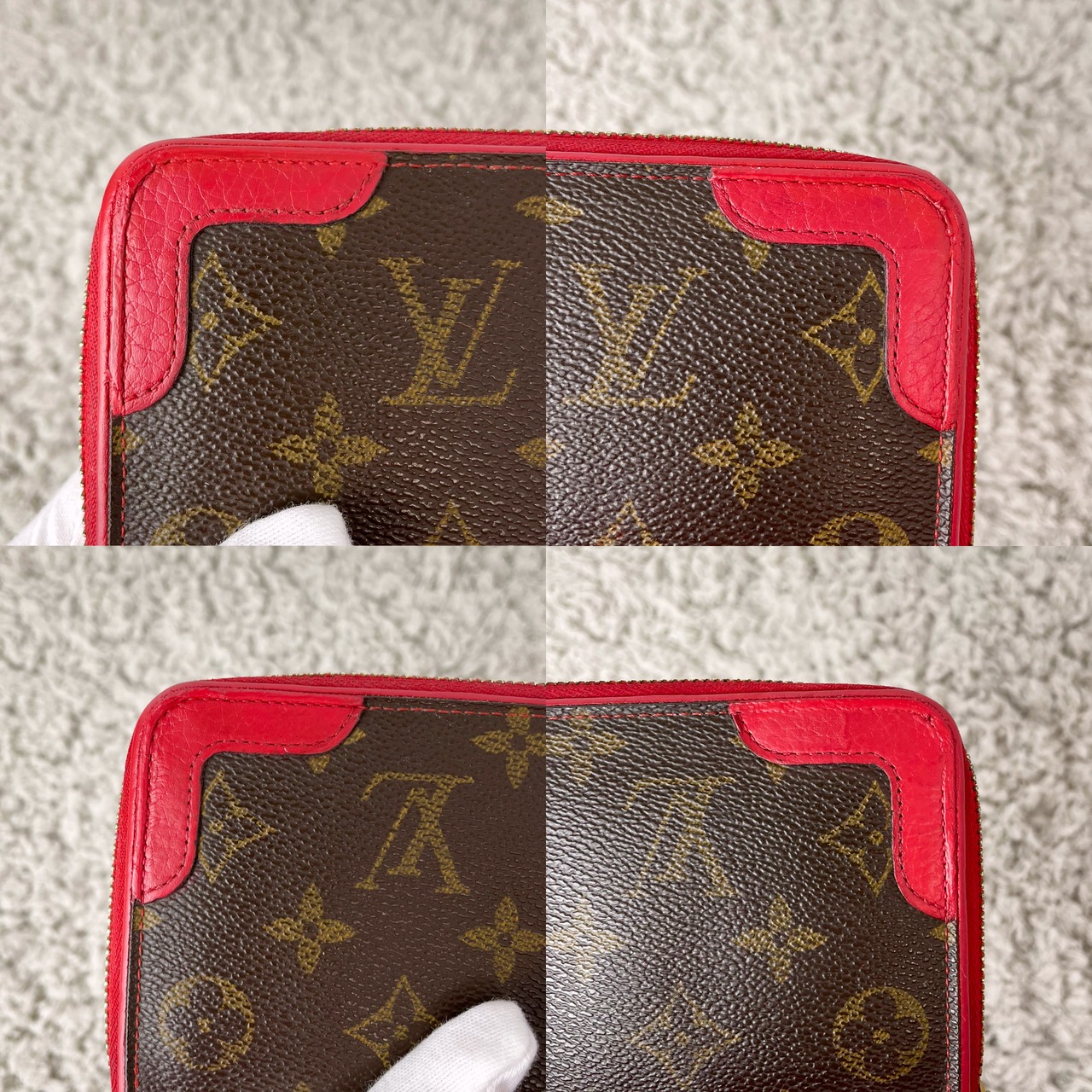 ・外側に若干使用感がありますが、内側は綺麗で目立った傷や汚れはございません。コーナー部分のカーフレザーがアクセントとなり、収納力も抜群でおしゃれさと実用性を兼ね備えてます。※コーナー部分、コバに一部補色あり