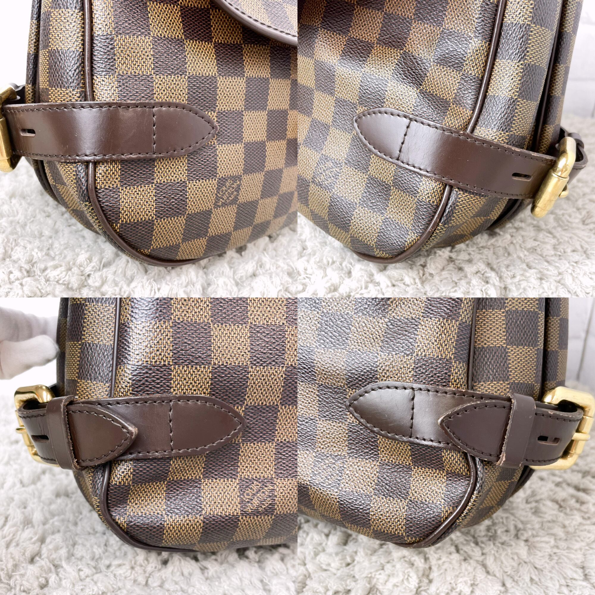 落ち着いた優美さと幾何学的なモチーフが魅力的なダミエラインの、内部が2層式で使いやすいクールなショルダーバッグ。