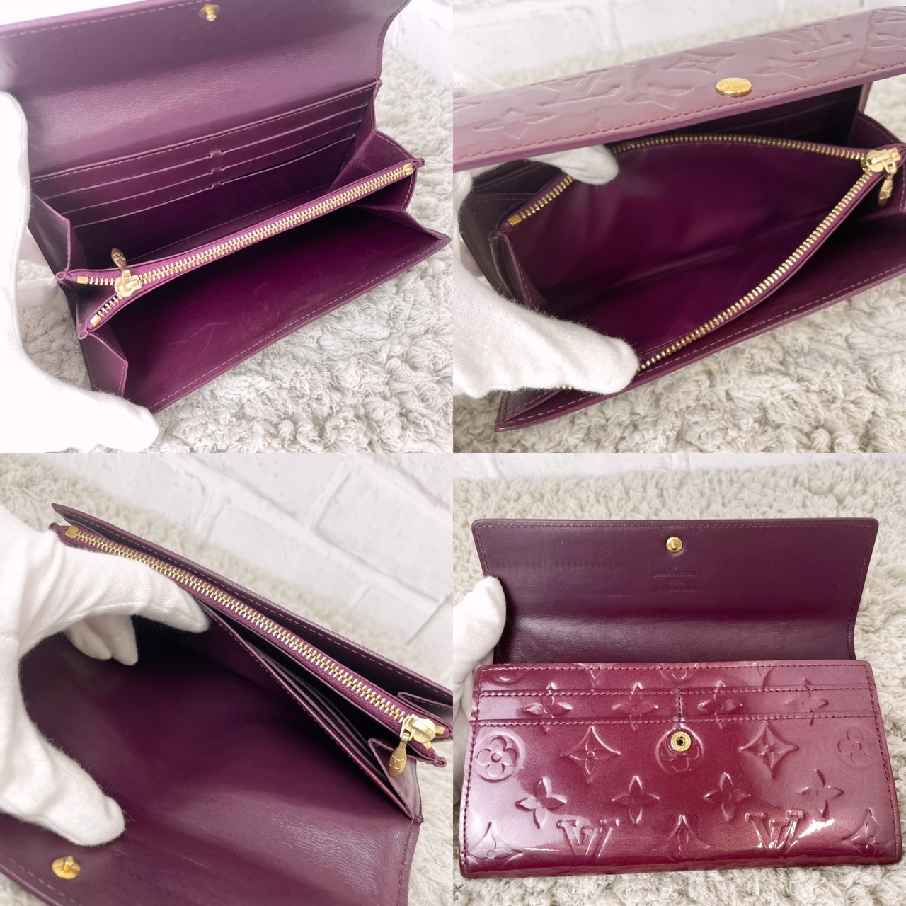 2008年春の新色。美しい光沢が魅力的なヴェルニラインの、紙幣、カード、レシート等を整理して収納できるファスナー付き長財布。開けたとき中のものが見やすく、小銭入れ部分も大きく開き使いやすいデザイン。