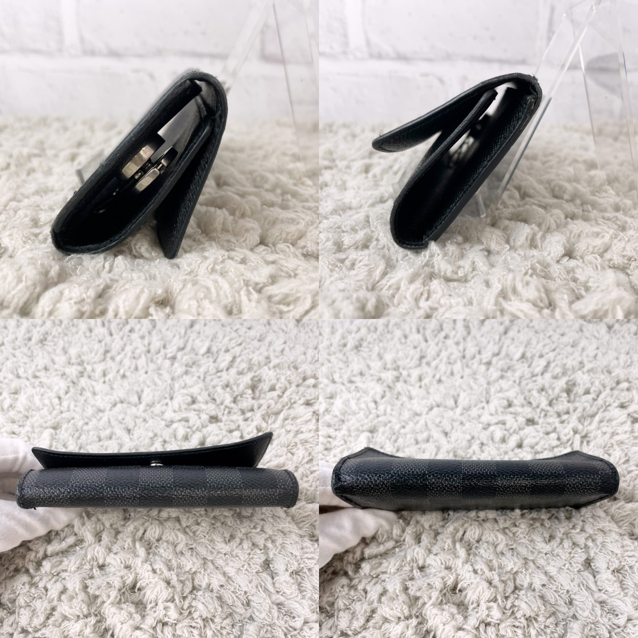 ・一部糸抜けしており(8枚目画像参照)、イニシャル消し跡がございます。フラップ部分の反りもございます。キーフック金具は2連です。他に大きく目立った傷や汚れは無く、ボタンやキーフック部分もしっかりしており長くご愛用していただけます。