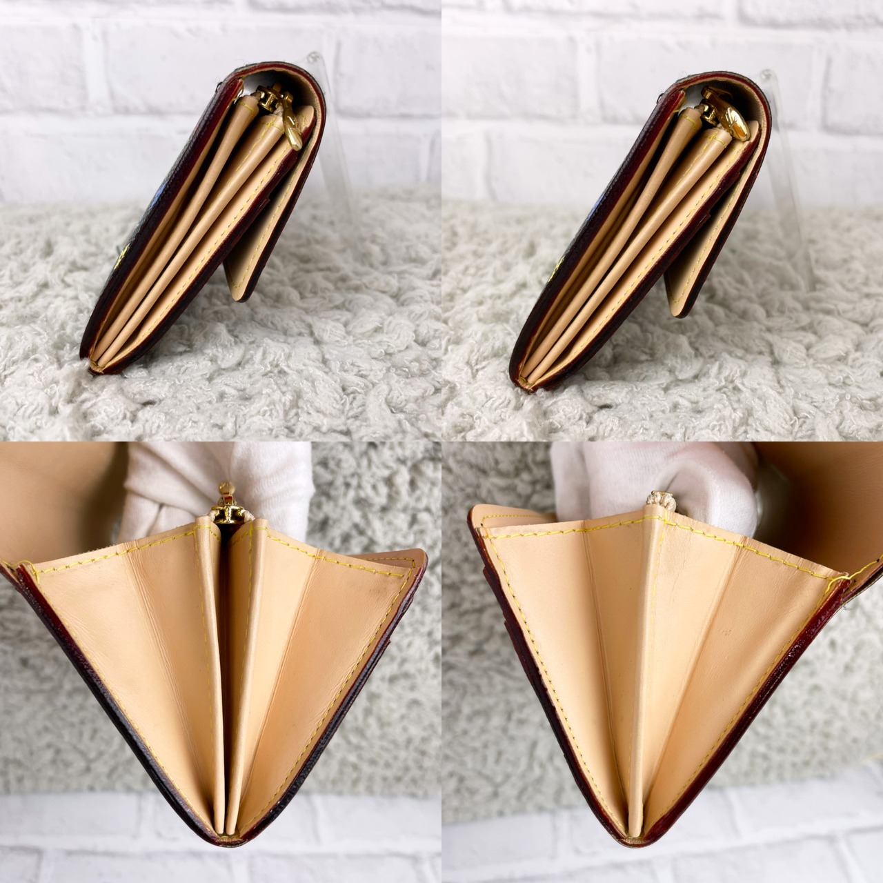 ・モノグラム柄に一部スレ、外側のカードポケットの反りはございますが、大きく目立った傷や汚れはなく、ご使用には全く問題はなく、まだまだ長くお使いいただけます。カードポケットも大容量です!