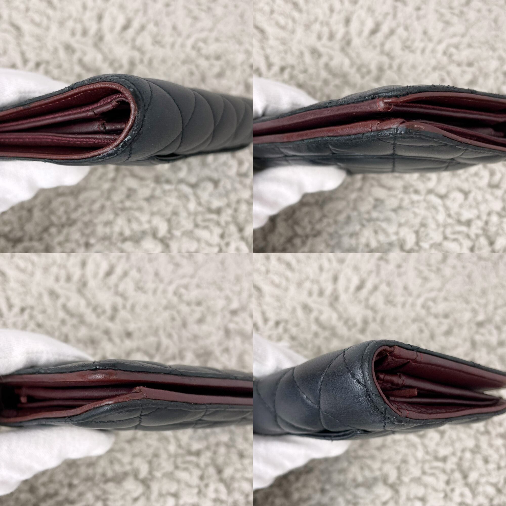 シャネル定番のマトラッセステッチにシンプルなココマークがデザインされた二つ折り長財布です。