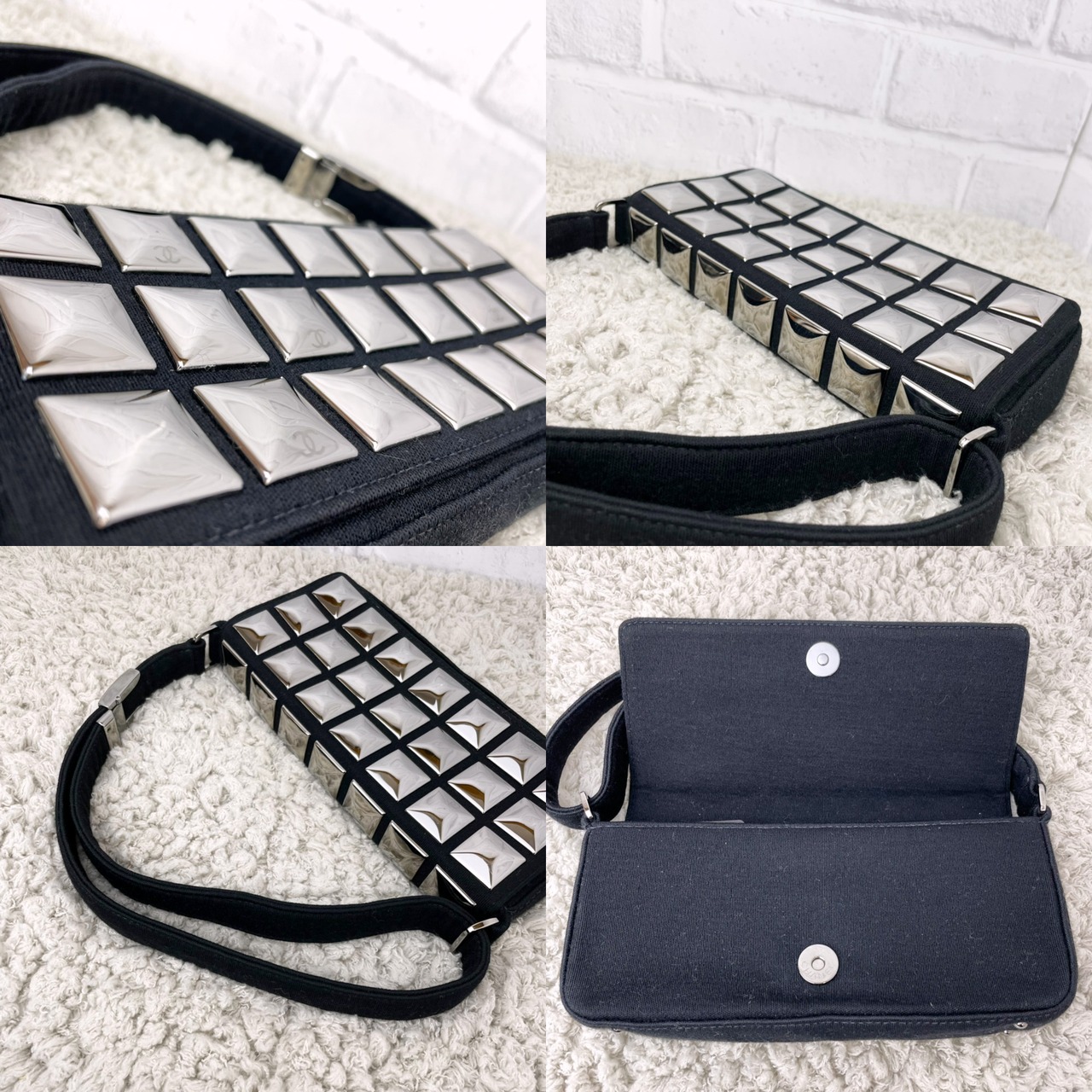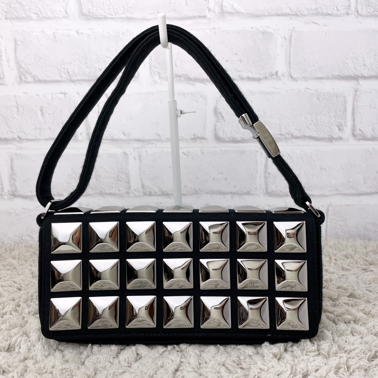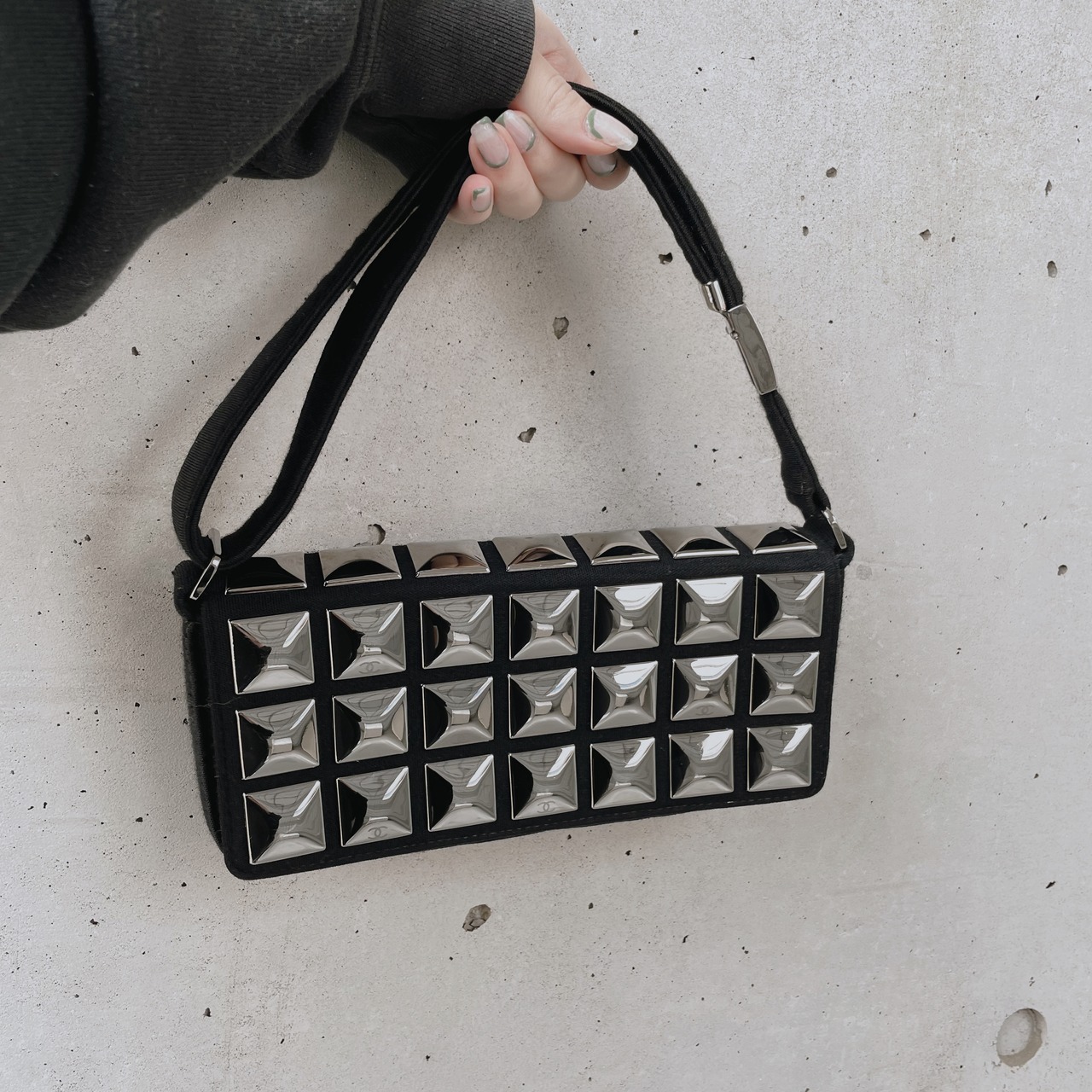 スタッズのアイスキューブショルダーバッグ。