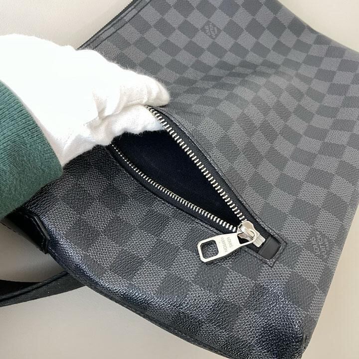 ダミエ グラフィットの人気の高い斜め掛けショルダーバッグです。程良いサイズで見た目以上に収納力があり、ポケットも多いので整理がしやすいです。斜め掛けが可能で使い勝手も抜群です。