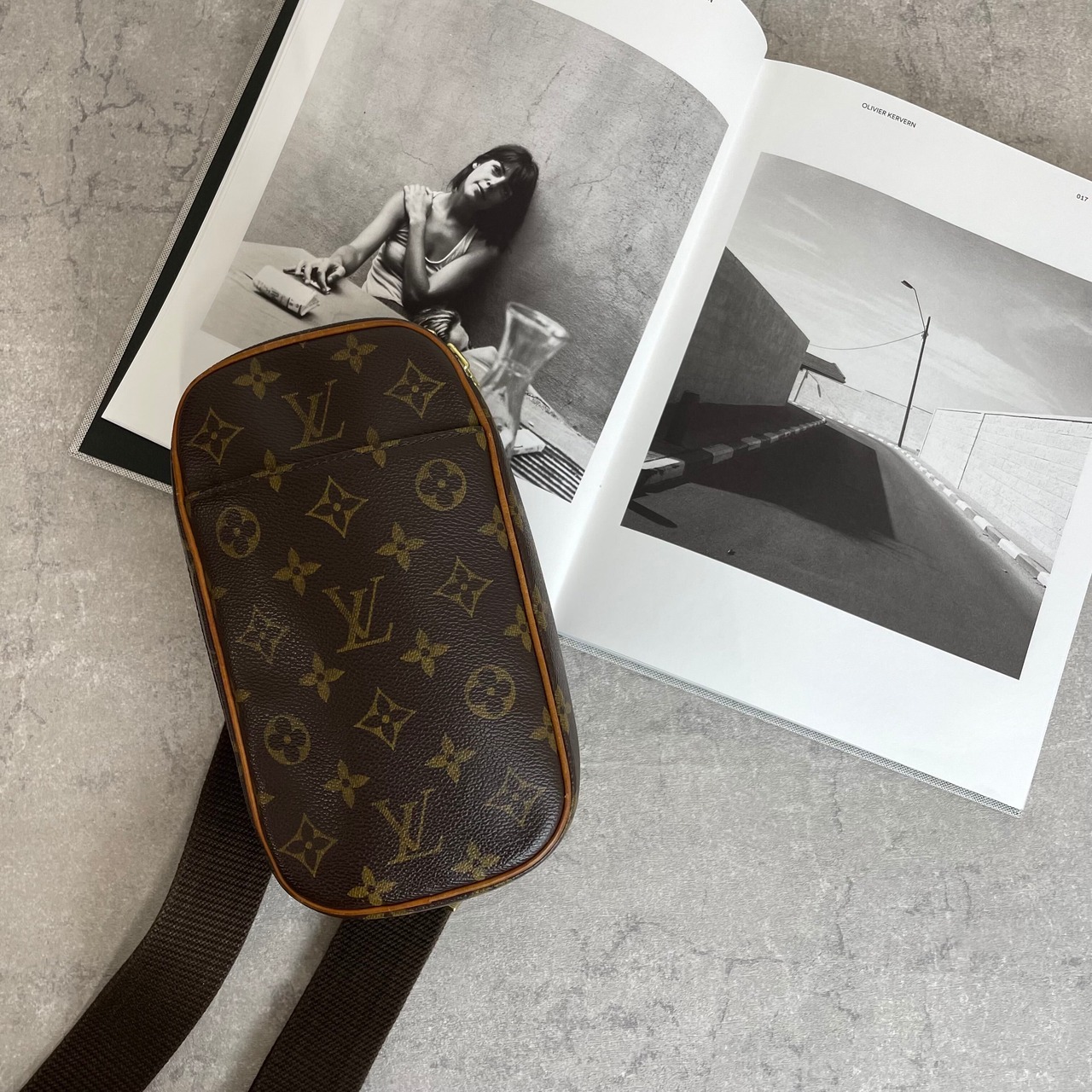 ヴィトンの定番人気ラインのモノグラムのショルダーバックです。ファスナー開閉で中身も入れやすく、前ポケットにはスマホもしっかり収まります。
