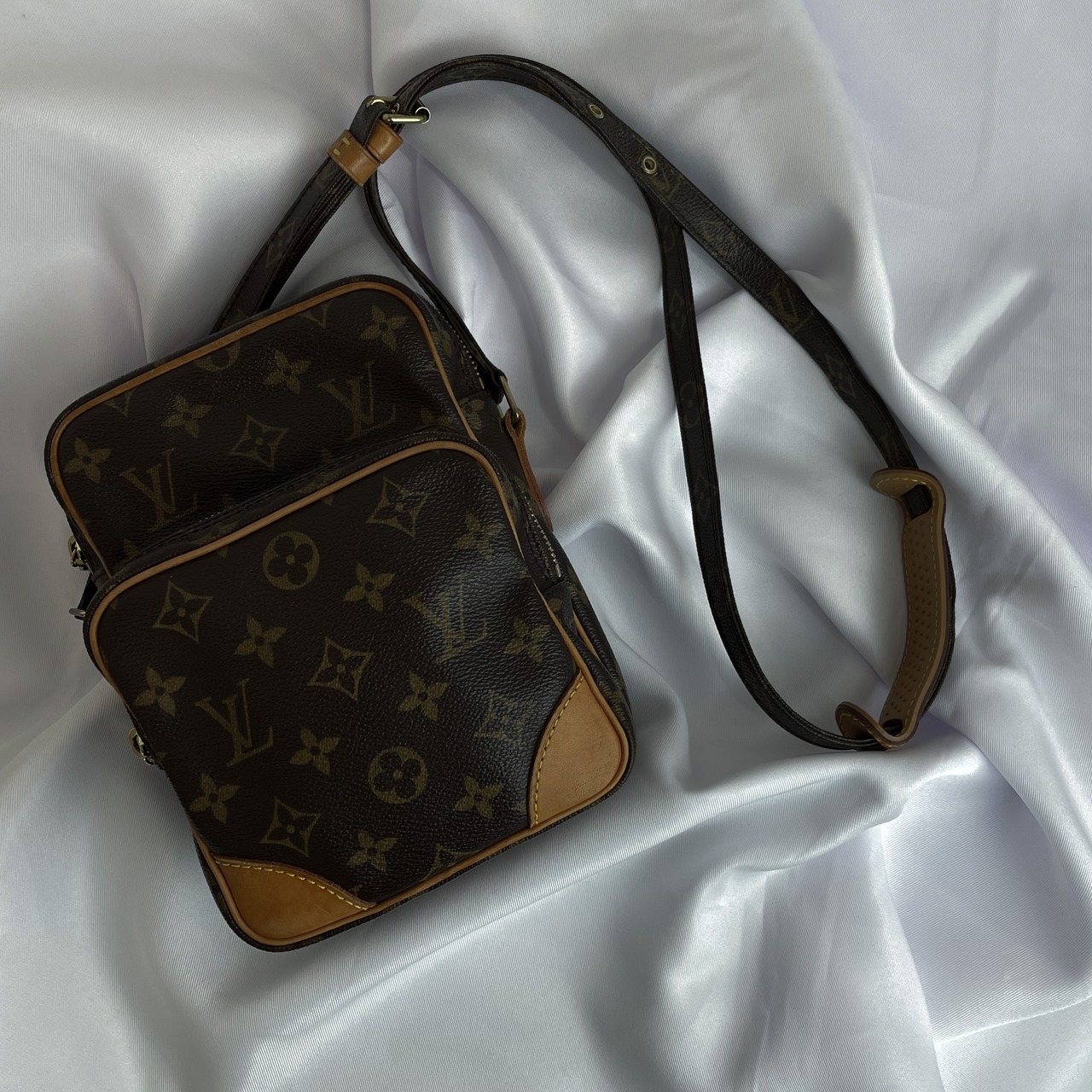 四角いフォルムが人気のヴィトンの定番のコンパクトタイプのショルダーバッグ。 ファスナー付の2つのコパートメントには、携帯電話やお財布などがすっきり収まります。