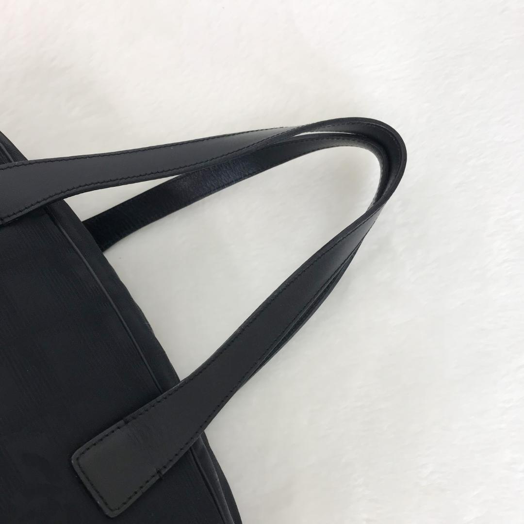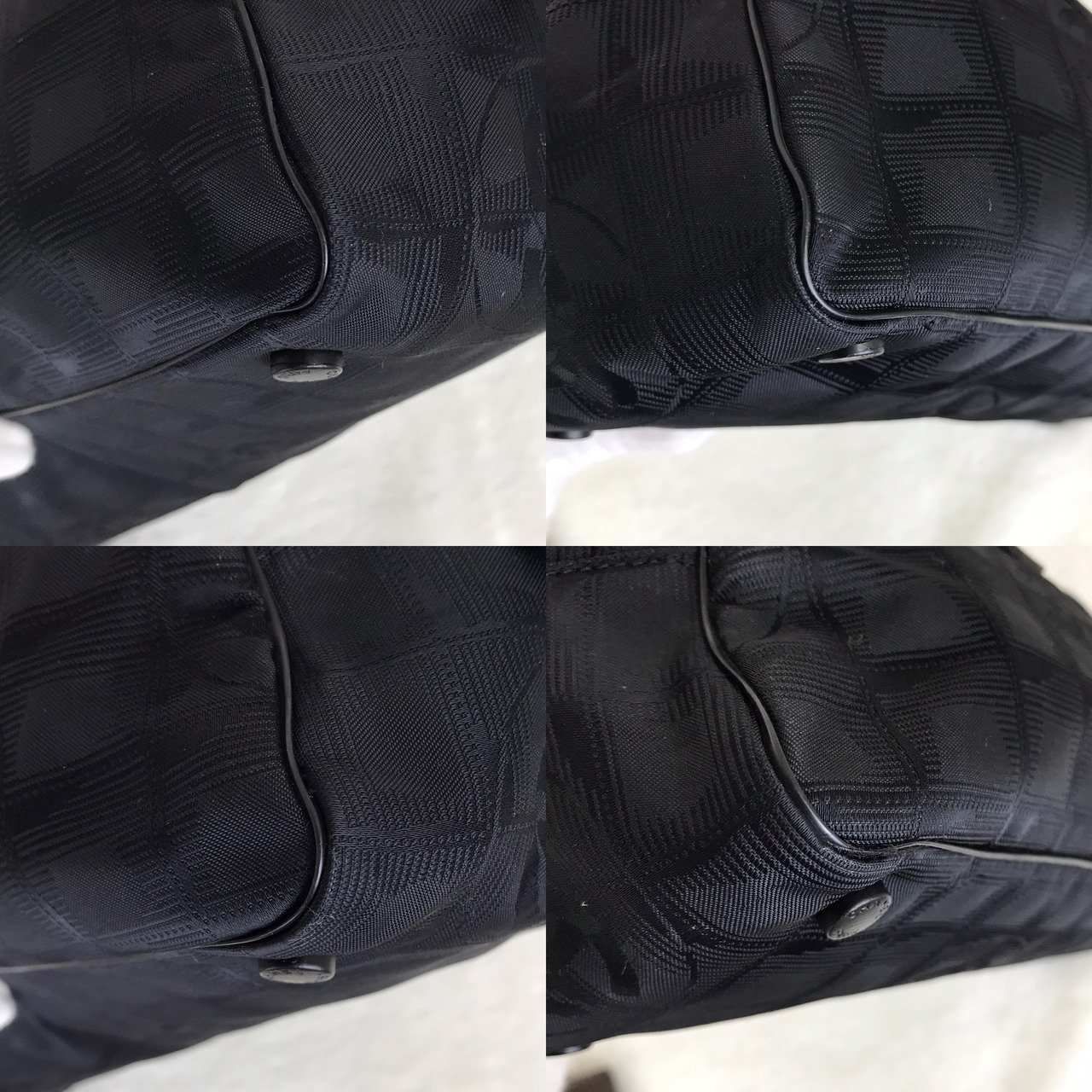 ファスナー部サイドの飾り革裏側部分や持ち手付け根裏側部分(写真7枚目)に少々糸ほつれがございますが、バッグ本体自体は外側内側ともに目立った傷や汚れはなく綺麗で、持ち手もしっかり自立し、2箇所のファスナーの開閉も良好です。