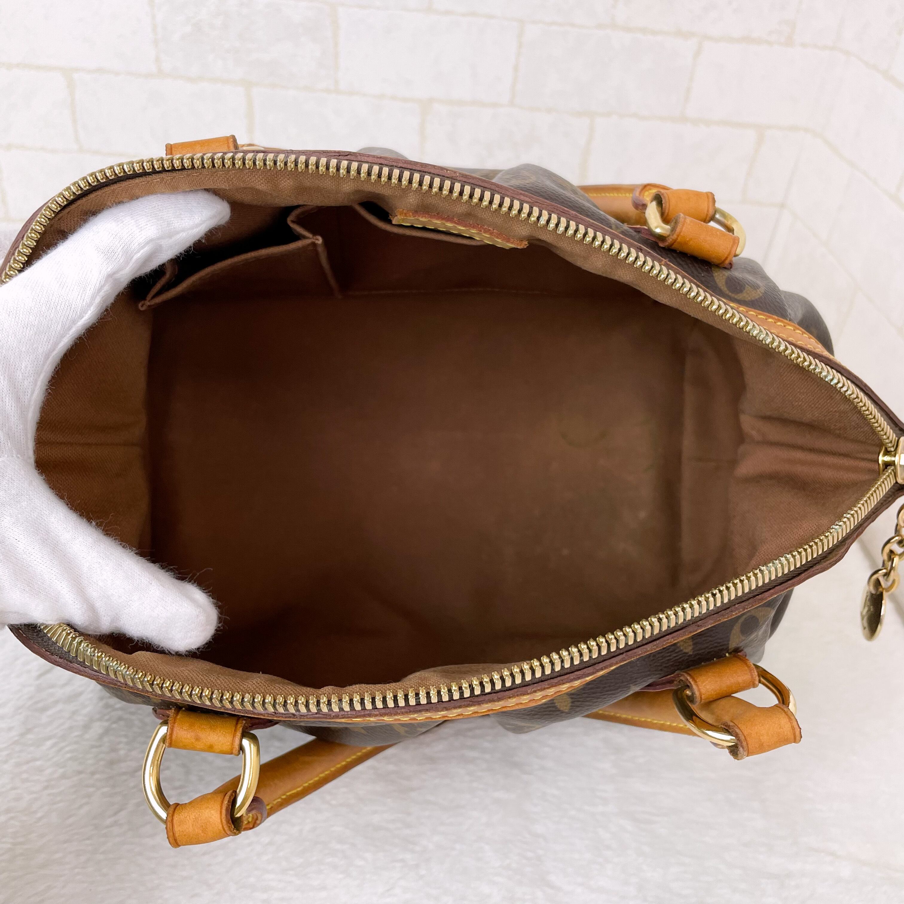 コロンとしたフォルムがかわいいバッグ。中央にはプリーツを施したデザインで、ファスナーエンドについたLVロゴチェーンがポイント。