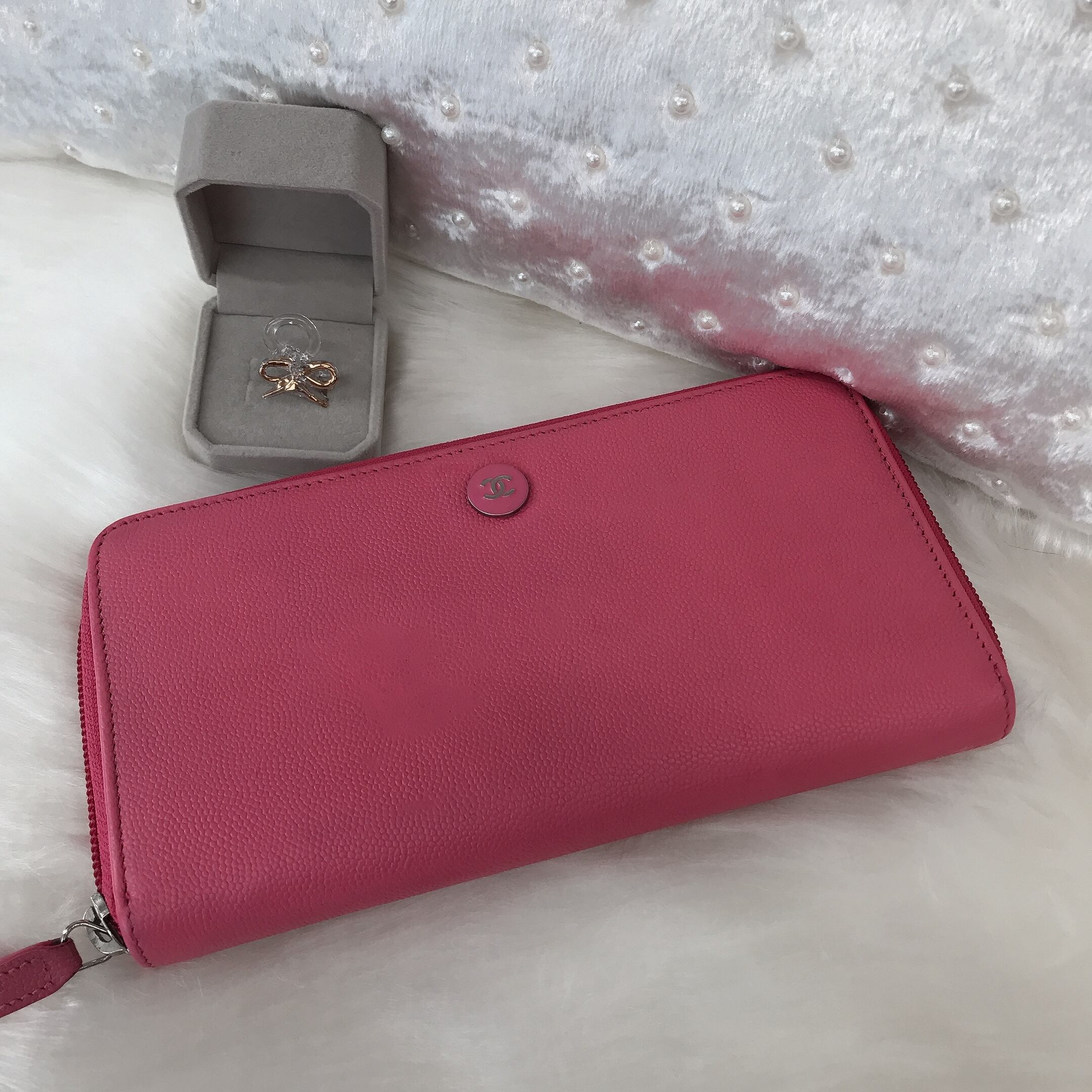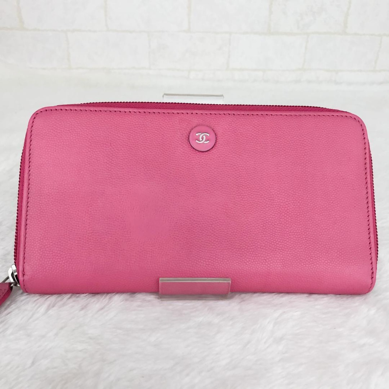 シャネルでも人気のキャビアスキンのラウンドジップ長財布。