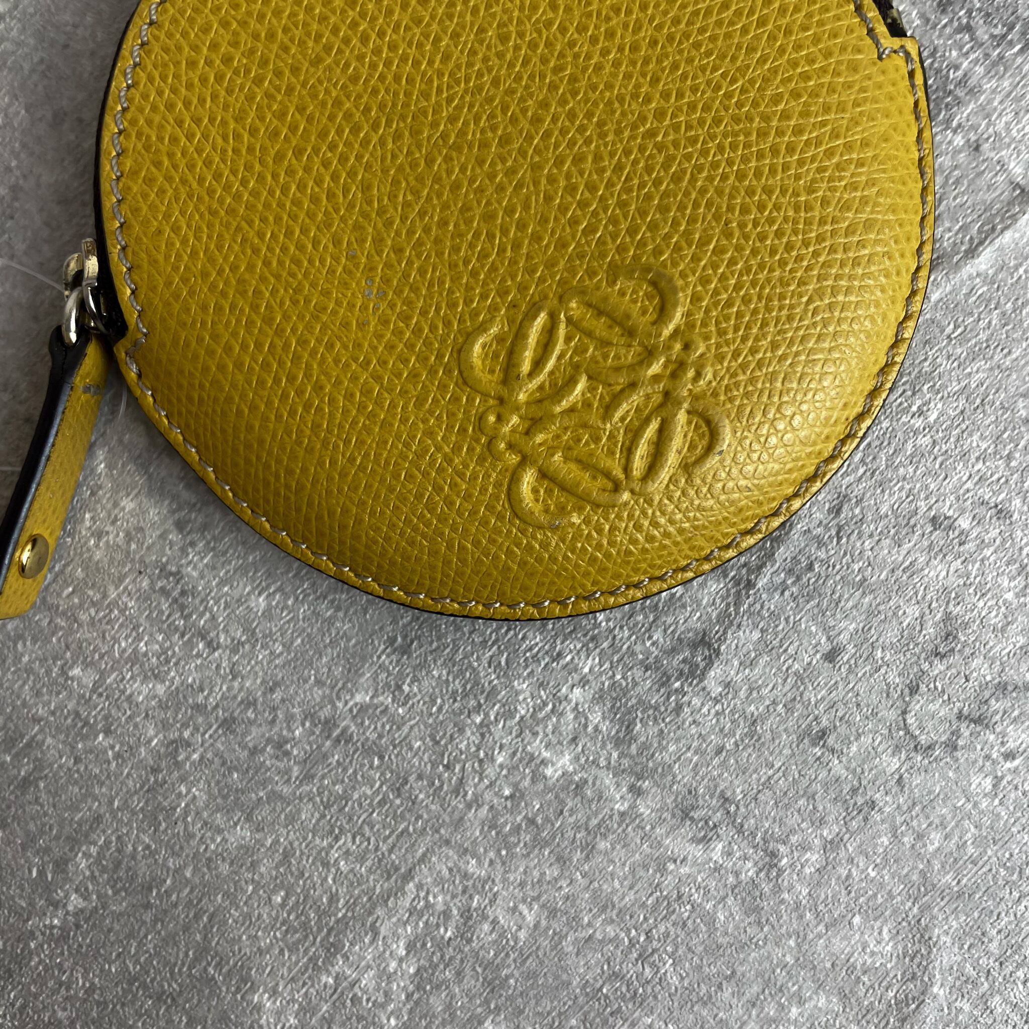 綺麗なイエローが目を引く、コロンとしたフォルムがかわいいロエベのコインケースです。