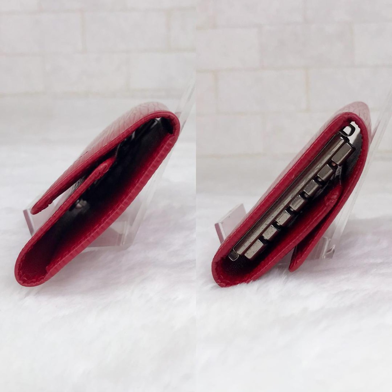 型崩れとキーリングのメッキ剥げが少々ございますが、革もロゴもしっかりしており、目立ったキズやヨゴレはございません。アクセントになるお色味で、お財布や手帳なととも相性よくお持ちいただけると思います。