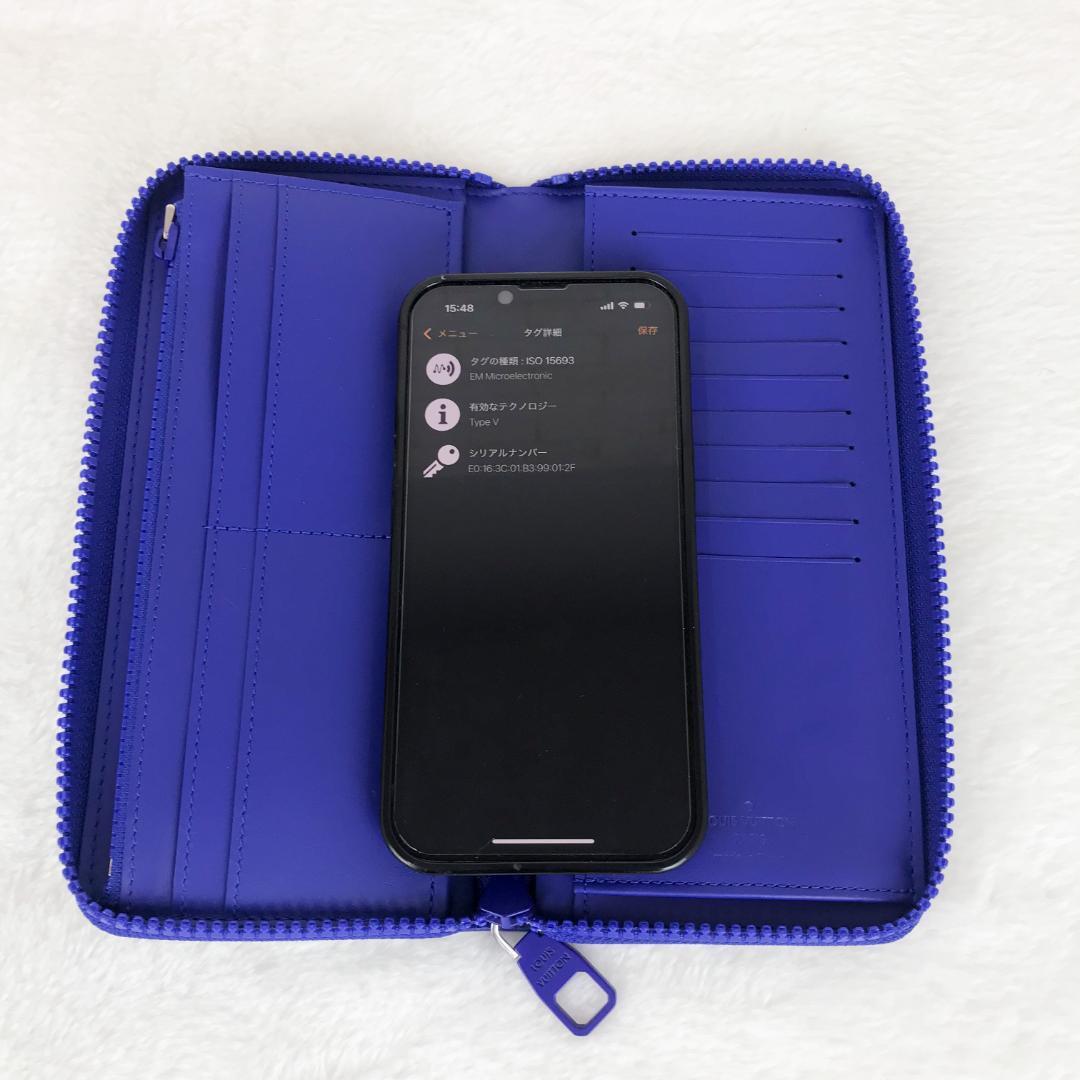 綺麗なネオンブルーにマットブルーのファスナーがアクセントになったジッピーウォレット、ヴェルティカルです。収納力も抜群です◎
