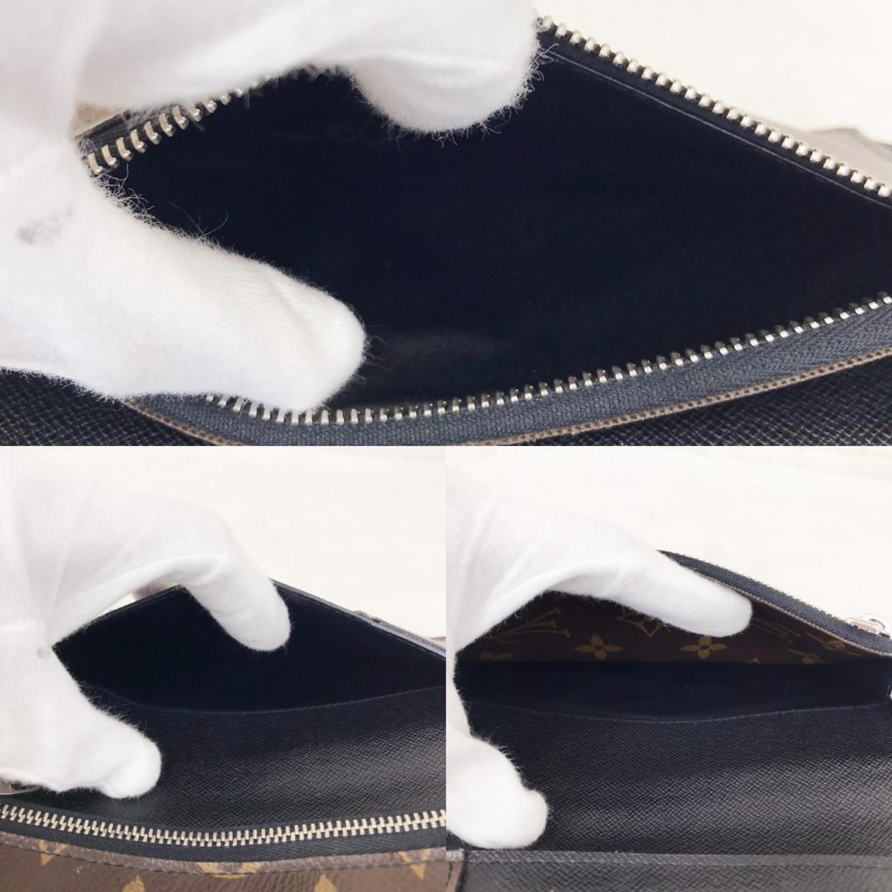 コバ部分に少々の凹凸と、小銭入れに僅かに浮きがございますが、全体的に綺麗な商品で、モノグラムとブラックのバイカラーがかっこよく、幅広いシチュエーションでお使いいただけます。