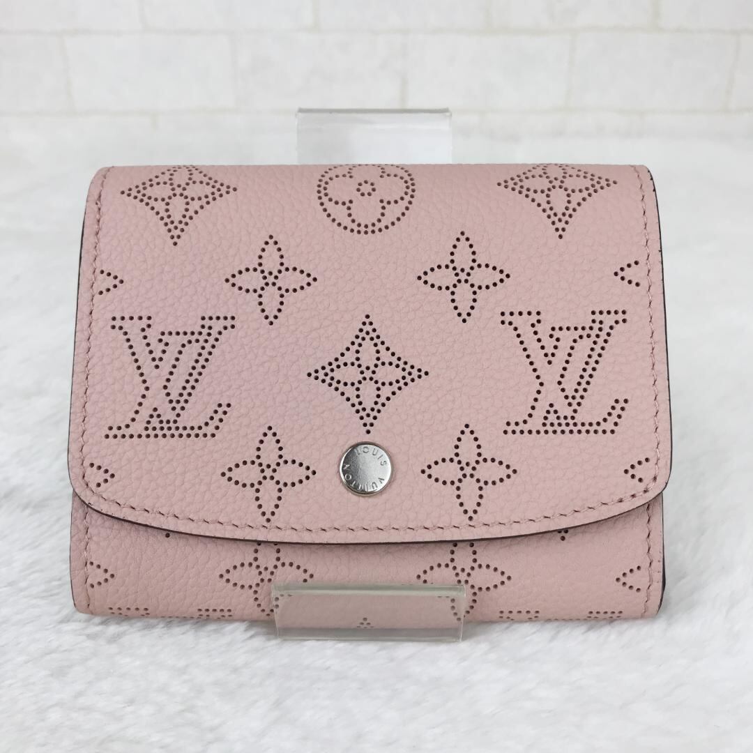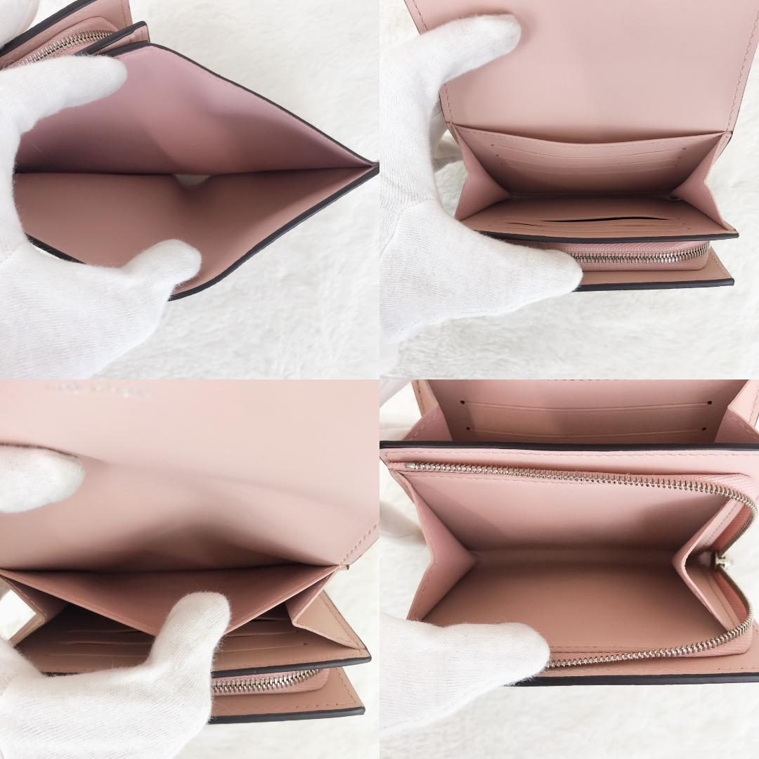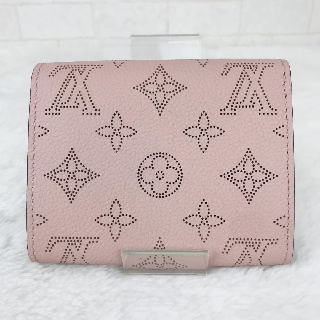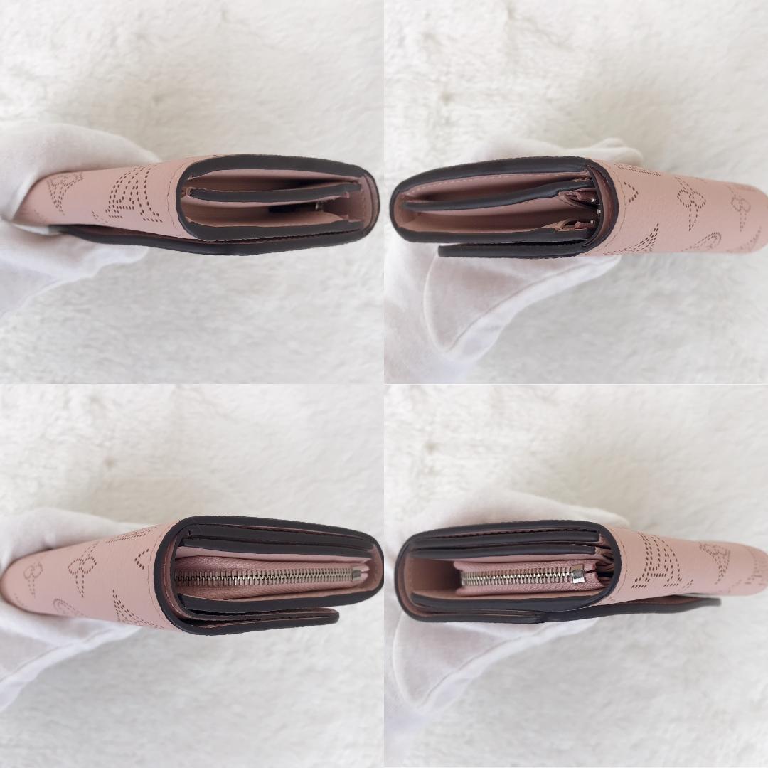 ベビーピンクがとても可愛いコンパクトなマヒナのお財布.。柔らかく丸みを帯びたフラップを開くと、クレジットカード用のスロットや小銭用のファスナー式ポケットなど機能もばっちりです。