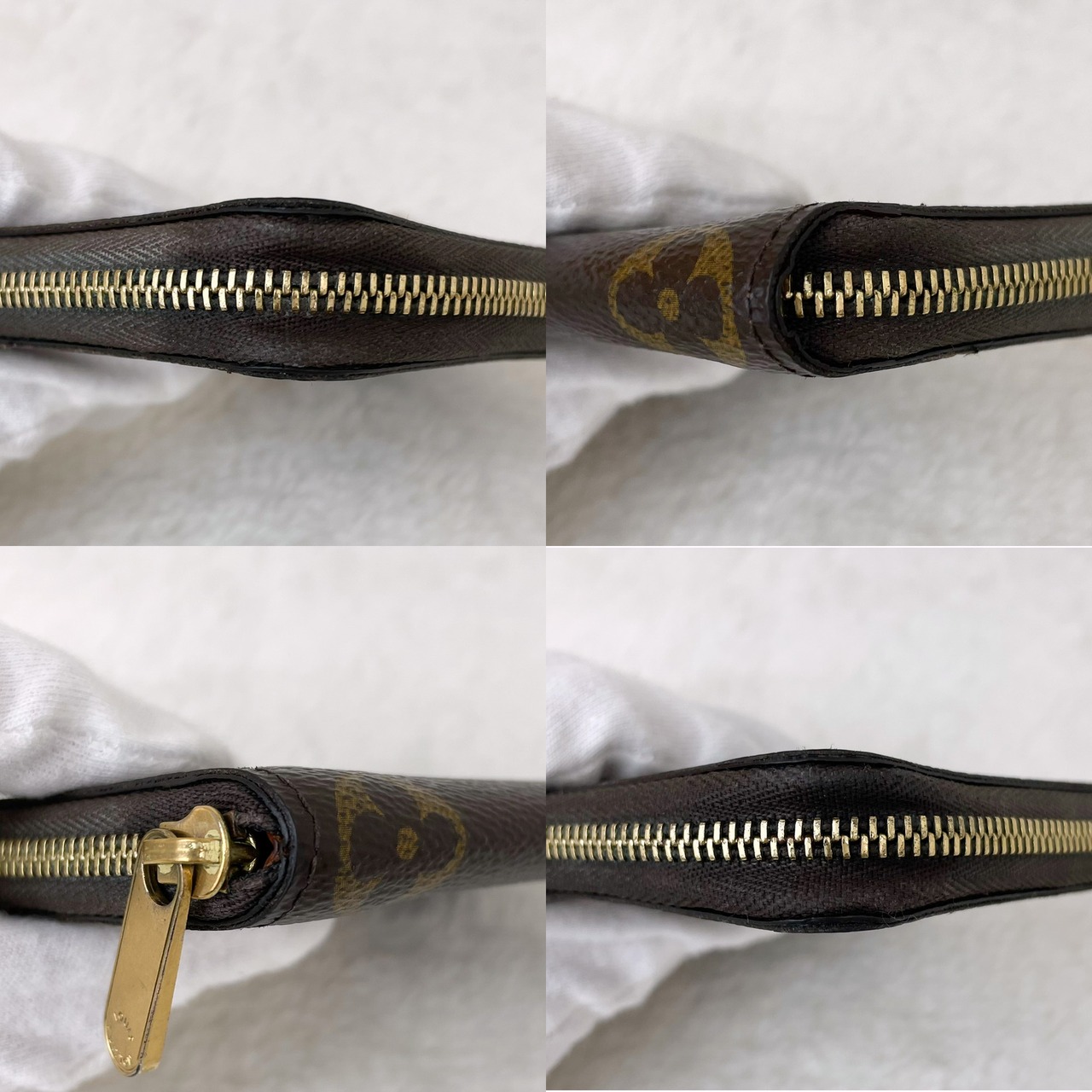 角スレが若干ございますが他は特に問題はなく大きく目立つような傷や汚れもございません。ファスナーもしっかりしています。