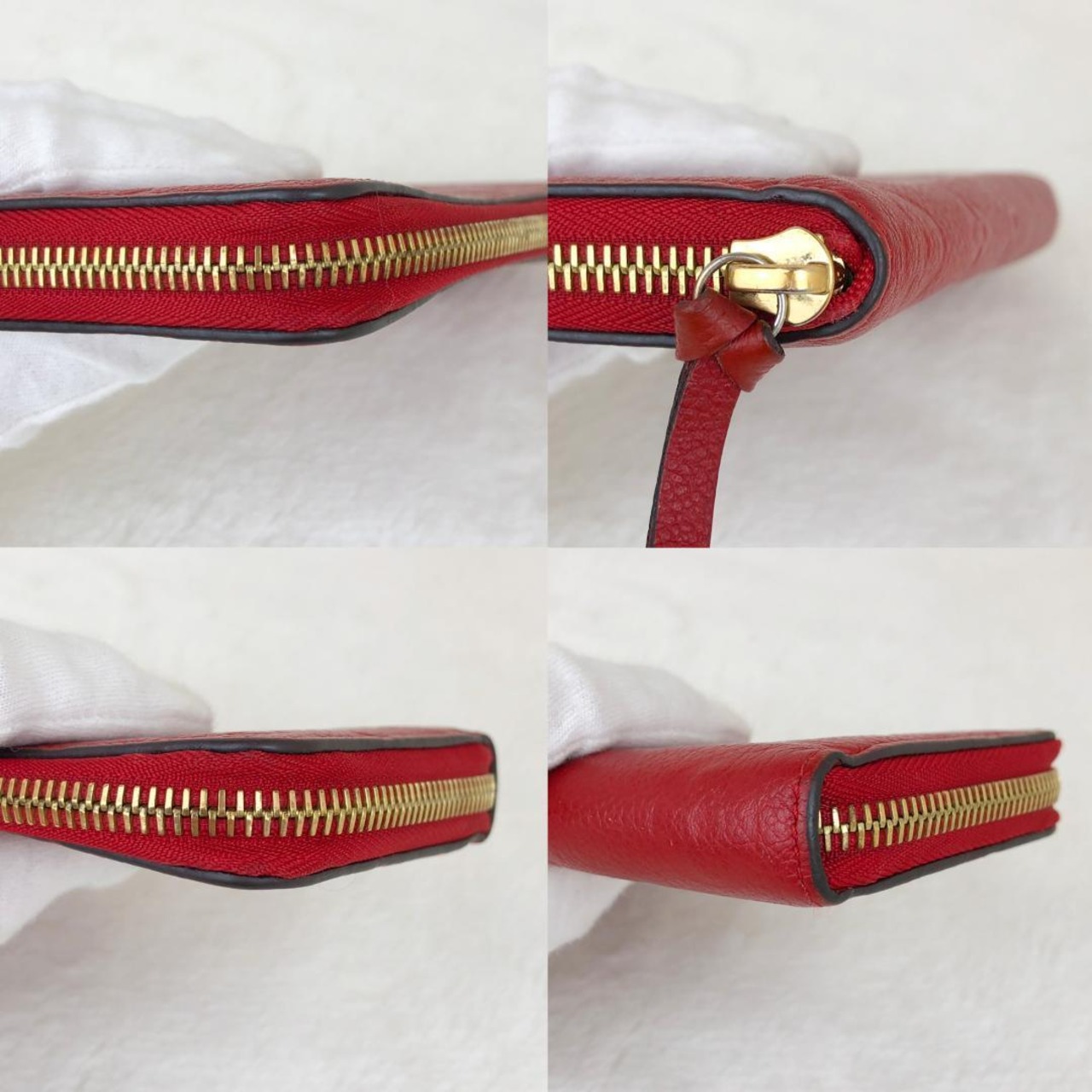 内側に若干の薄ヨゴレがございますが、色落ちや角スレ等は無くジップ持ち手部分もヒビやキレなどはございません。