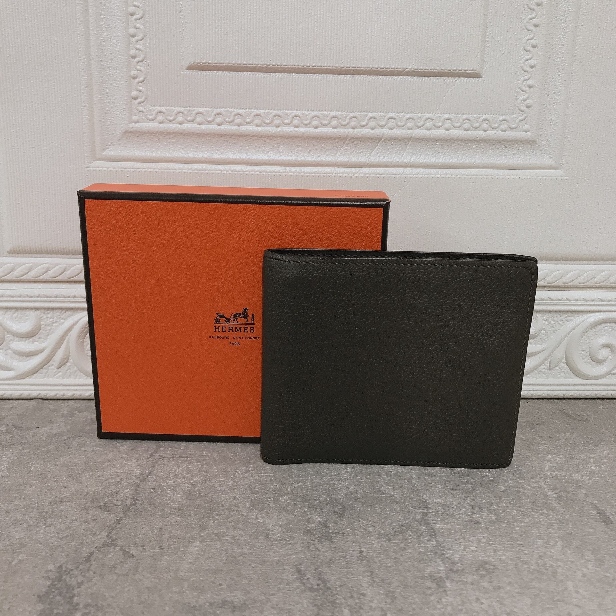グレージュ系なお色が今からの季節にぴったりなシンプルな二つ折り財布です。