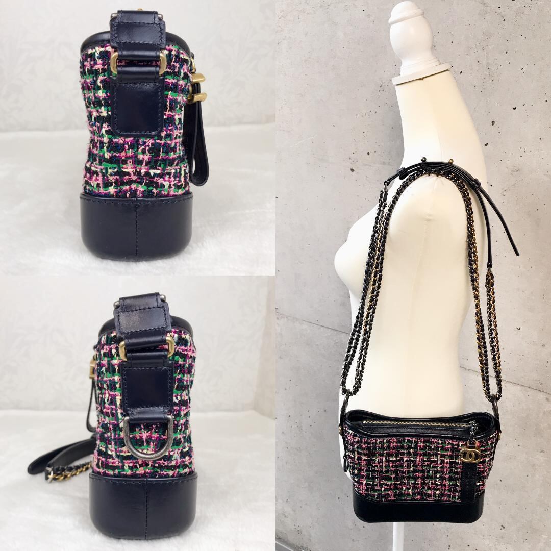 斜め掛け可能なショルダーバッグにはチェーン部分の金属の3種使い、