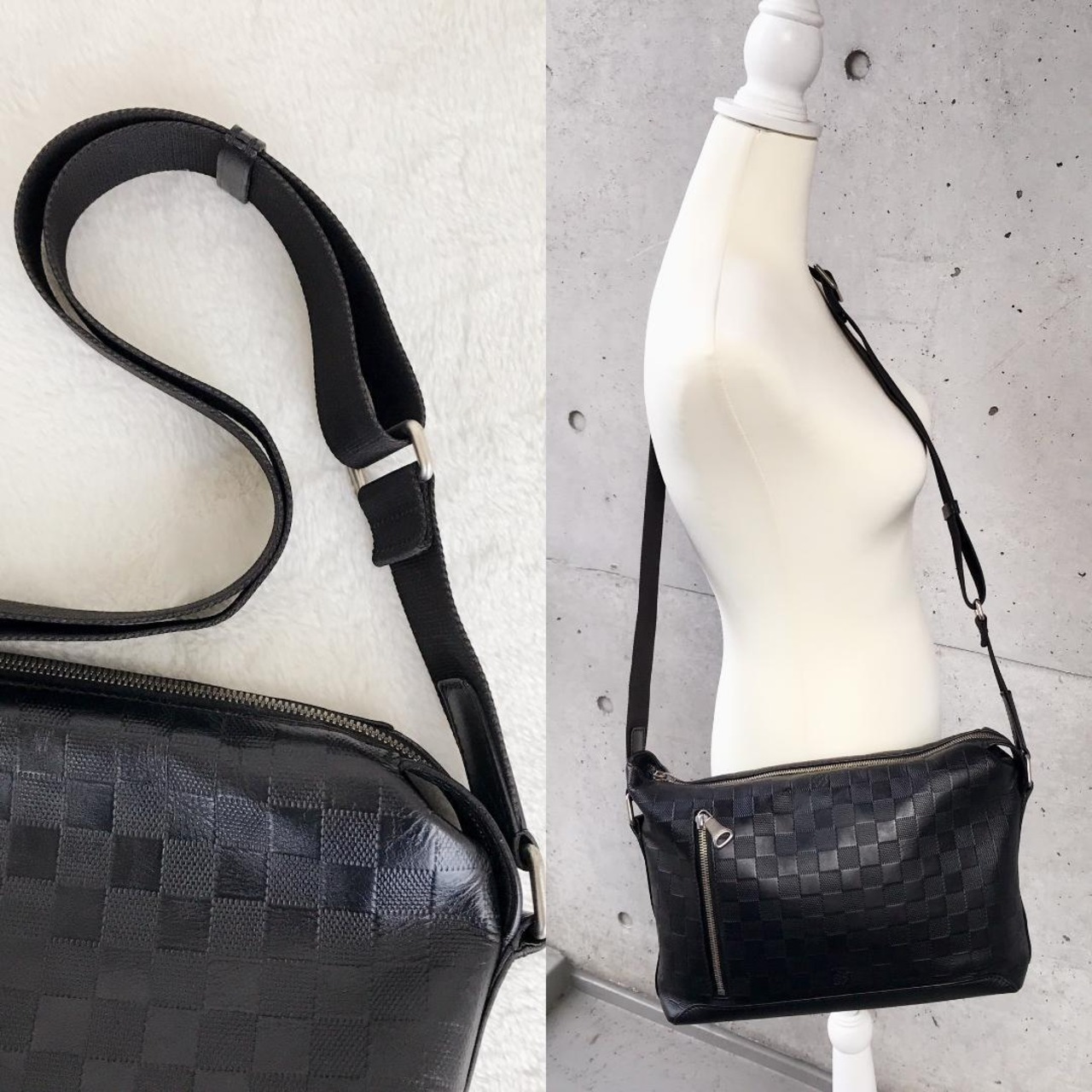 型押しされたダミエ柄が落ち着いた印象の、人気の高いダミエアンフィニラインのショルダーバッグ。