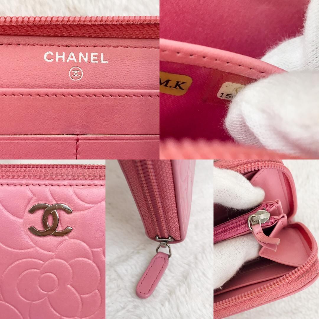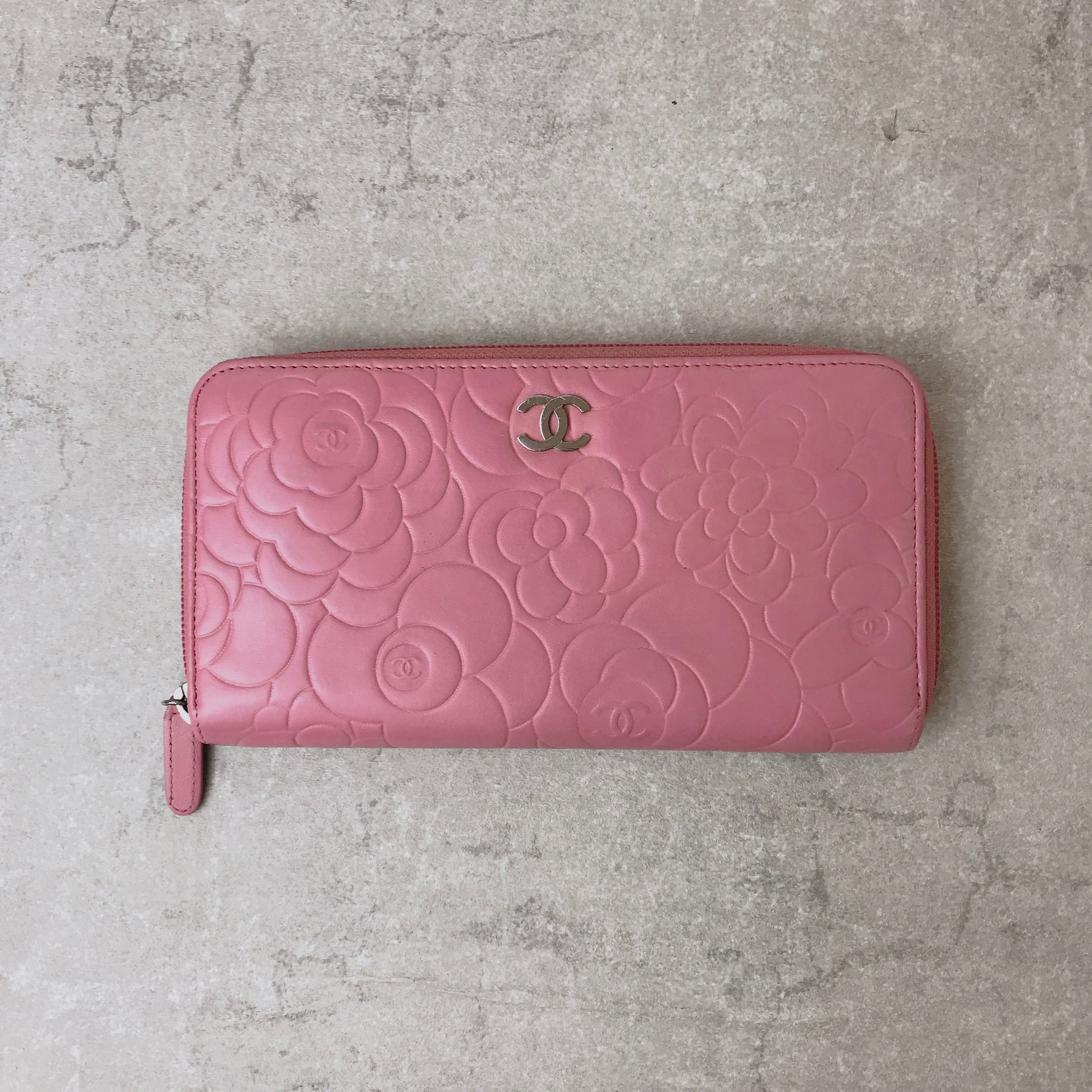 シャネルが愛したカメリアの花が咲き誇る、かわいらしいピンクの長財布です。