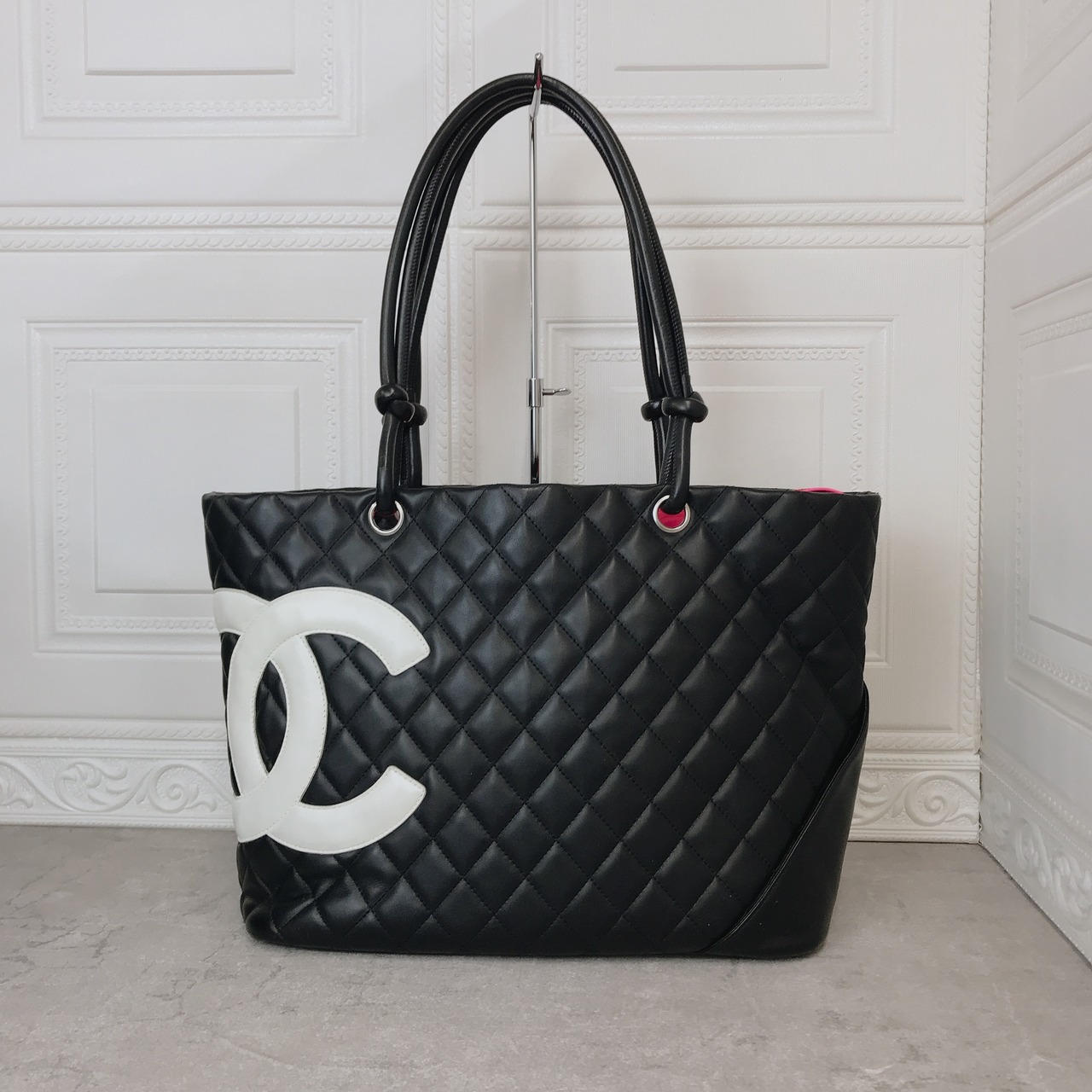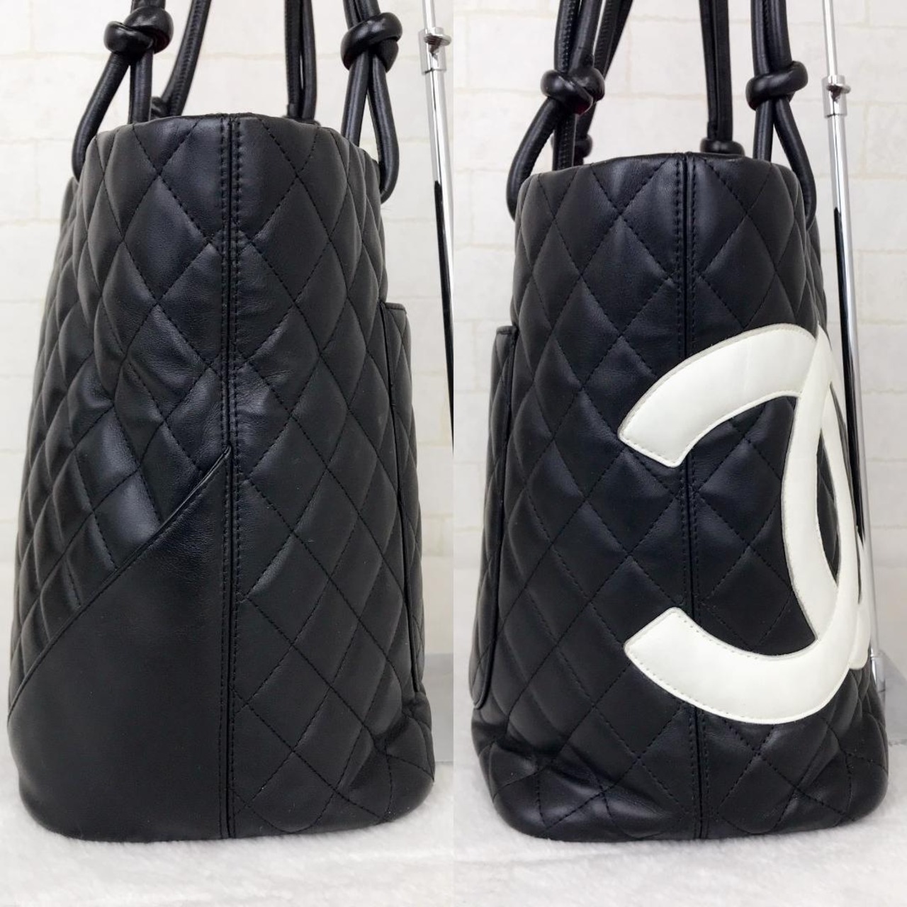 CHANEL カンボンライン ラージトートバッグ ブラック ホワイト