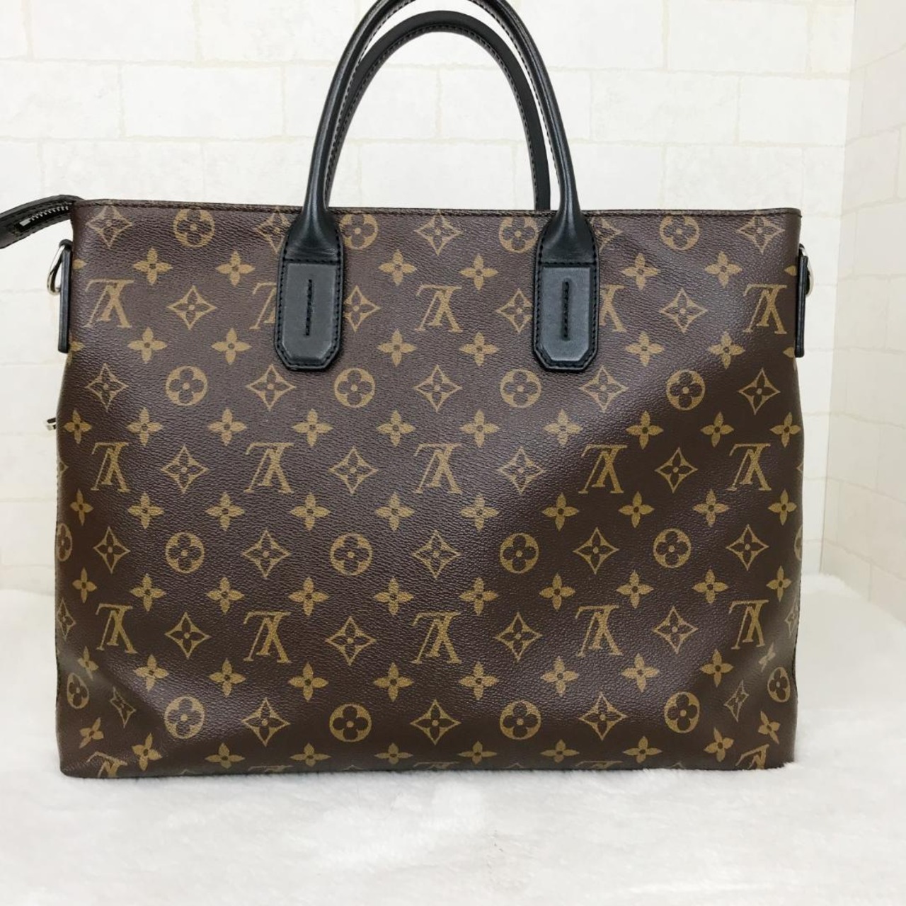 モノグラム・キャンバスとレザーを組み合わせたシックなビジネスバッグ、