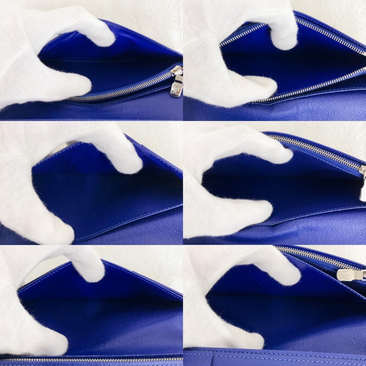 鮮やかなブルーのタイガ・レザーとモノグラム・キャンバスで仕上げた「ポルトフォイユ・ブラザ」です。